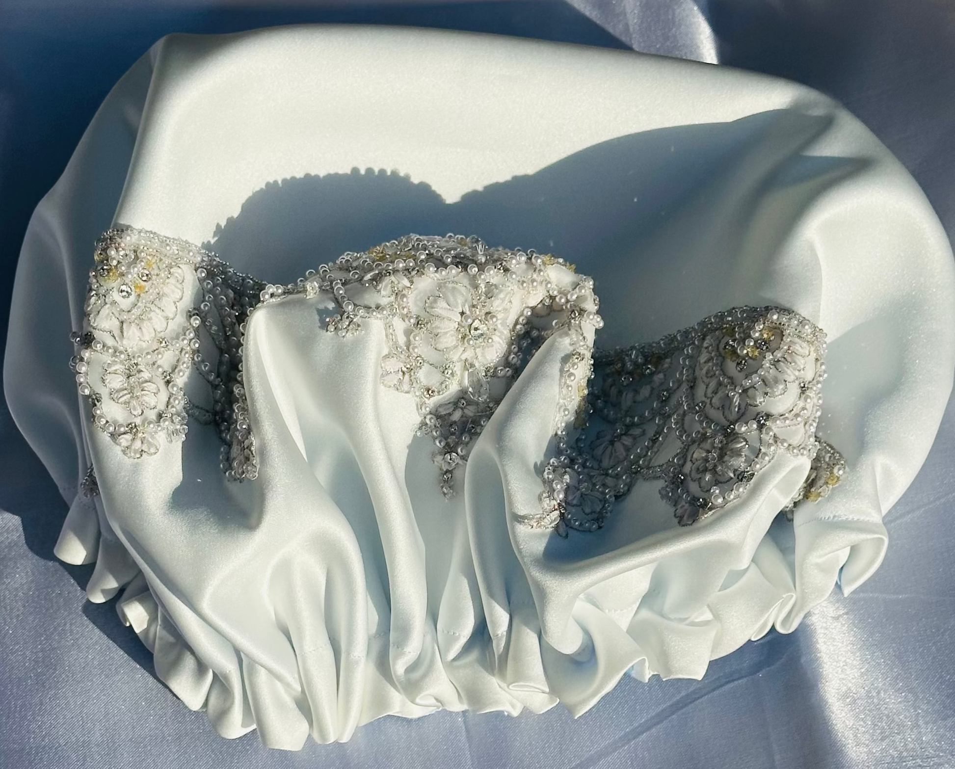 Bridal luxury, hair bonnet, double-sided, White, Beaded, Designer bonnet
